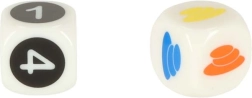 36 stuks steentjes in verschillende vormen en kleuren, 20 taakkaarten, 6 bekers, 1x pincet, 2x dobbelsteen