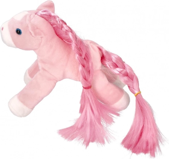Deze pluche pony heeft een lange en prachtig gevlochten manen en staart, waardoor het de perfecte knuffelige metgezel voor elk kind is.