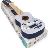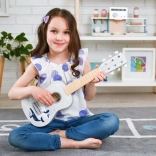 Deze schattige kindergitaar in Scandinavische stijl stimuleert creativiteit en helpt het muzikale gehoor en de fijne motoriek te ontwikkelen. Dankzij de mensuur van ca. 22 cm ligt hij prettig in kleine handen en leren kinderen gemakkelijker basisakkoorden en ritmes.