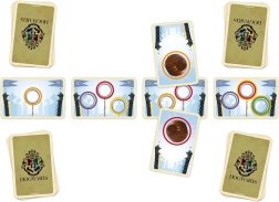 Geïllustreerde kaarten met ringen, quaffles en afdelingssymbolen brengen de magische sfeer rechtstreeks naar de tafel.