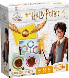 Betreed het Zwerkbalveld en word de kampioen van je afdeling! In het vlotte spel Quidditch Tryouts van Shuffle leg je je kaarten aan op kaarten met ringen, reageer je snel op kleuren en probeer je je tegenstanders te slim af te zijn. Nadat alle ringkaarten zijn gespeeld, wint de speler met de hoogste score – misschien wel de nieuwe speler van Griffoendor!