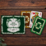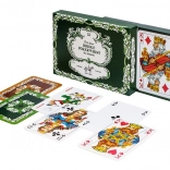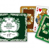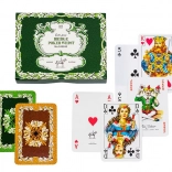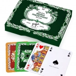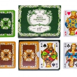 Klassieke Piatnik speelkaarten met een eikenbladerenmotief in een praktisch dubbelpak, ideaal voor liefhebbers van bridge, poker en rummy. Elke set bevat 55 geplastificeerde kaarten met een formaat van 58 × 89 mm en een gramgewicht van 310 g/m², bekend om hun duurzaamheid, prettige grip en elegant design gebaseerd op een vooroorlogse traditie.
