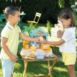 De uitgebreide set met 38 accessoires bevat een ijsmaker, hoorntjes en ijsbollen, een ijslepel, een fruitspies, toppings, servies, bestek en een kassa. Dankzij het compacte formaat is de kraam perfect voor in de tuin, het park en op het strand – ideaal voor jonge gastheren en gastvrouwen van zomerse feestjes.