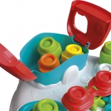 De tafel biedt een breed scala aan activiteiten voor het ontwikkelen van kinderhandigheid, zoals tandwielen, een katapult voor blokken en springende bubbels.