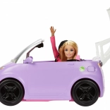 Neem je poppen mee op een spannende rit in een moderne cabriolet met een open dak. De auto heeft een stijlvolle paarse carrosserie met realistische details, inclusief veiligheidsgordels en een achteruitkijkspiegel.