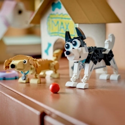 Bouw je eigen roedel met de LEGO Creator 3-in-1 Schattige hondjes set. Kinderen vanaf 7 jaar beleven uren speelplezier met drie verschillende bouwbare hondenteams met beweegbare koppen, staarten en oren, plus leuke accessoires zoals een bakje, borstel, balletje en een lus als riem. De creatieve bouwset stimuleert fantasie en fijne motoriek en biedt geweldige 3-in-1 ombouwopties voor eindeloze verhalen.