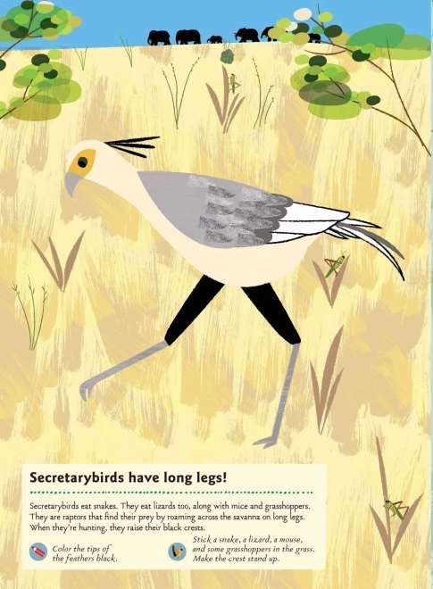 Dit creatieve activiteitenboek neemt kinderen mee door de fascinerende savannes van Afrika, Australië en Brazilië. Met stickers en opdrachten onthouden jonge ontdekkers interessante feiten en oefenen ze fijne motoriek en concentratie. Laat kinderen de hoorns van een impala plaatsen, leeuwenwelpen verstoppen in hoog gras of fruit op een boom plakken voor de olifanten.
