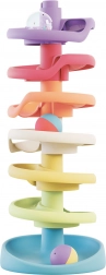 Spiral Tower Play ECO+ van het merk QUERCETTI is een hoogwaardige knikkertoren met 6 spiraalniveaus en een brede basis voor maximale stabiliteit. Kinderen volgen hoe de knikkers over de baan draaien, trainen hun concentratie en leren principes van oorzaak en gevolg. Eén van de knikkers rammelt tijdens het rollen, wat het gehoor stimuleert.