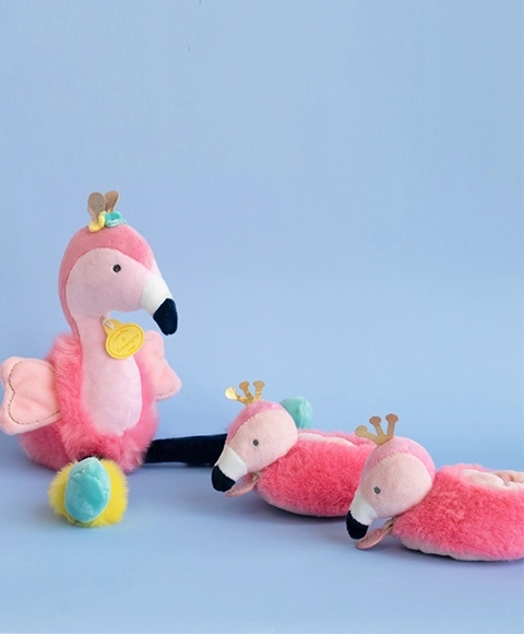 Schattige babyslofjes met een flamingo­motief in een elegante cadeauverpakking zullen zowel baby’s als ouders blij maken. Ze bieden prettige warmte, zijn zacht en soepel aan de aanraking en zijn perfect als een origineel kraamcadeau of voor het eerste bezoek.