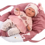 Ontdek de realistische Llorens NEW BORN pop, die betovert met haar zachte stoffen lijfje en authentieke geluiden. Na het indrukken van het borstje zegt ze “mama”, “papa” en maakt ze huilgeluidjes, wat fantasie en rollenspel stimuleert. Dankzij de gewrichten in armen en benen is de baby poseerbaar en kan ze comfortabel zitten.