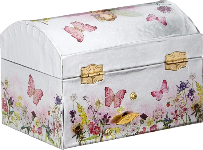Ta szkatułka w stylu pozytywki łączy czarujący wygląd z funkcjonalnością. Srebrzyste wykończenie z połyskiem uzupełniają subtelne motywy kwiatów i motyli, wewnątrz znajduje się owalne lusterko i obrotowa baletnica. Po otwarciu wieka rozbrzmiewa słynna melodia Jeziora łabędziego, która towarzyszy każdemu odkładaniu pierścionków czy kolczyków w bezpieczne miejsce.