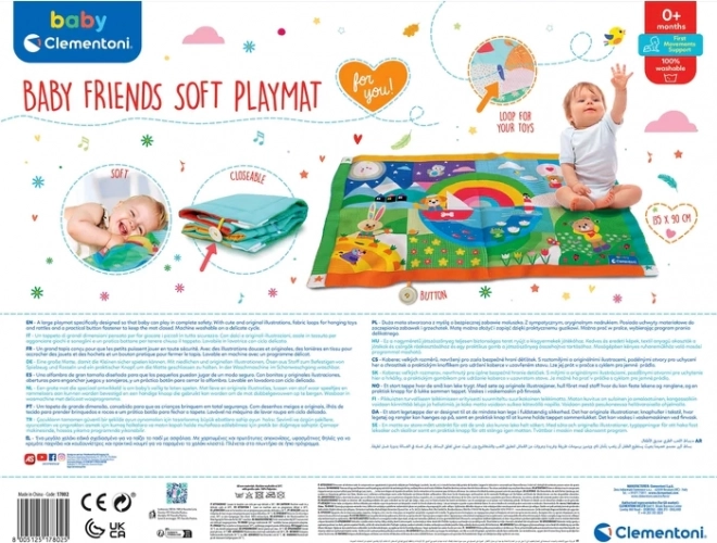 Mata CLEMENTONI BABY jest pełna kolorowych ilustracji z motywami zwierzątek i natury, które przyciągają uwagę dzieci i wspierają ich rozwój.