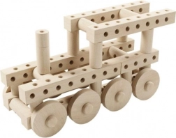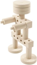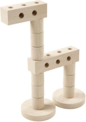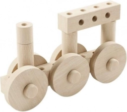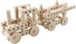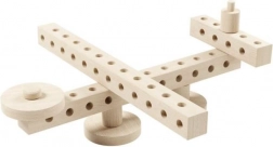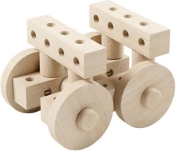 Zawiera bukowe wałeczki o średnicy 32 mm, klocki i kółka z otworami, które wspierają nieograniczoną kreatywność i rozwój motoryki małej.