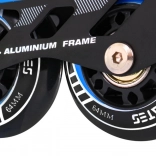 Bezpieczne dopasowanie zapewnia potrójne zapięcie: sznurowanie, pasek na rzep i klamra z zabezpieczeniem przed przypadkowym otwarciem. Aluminiowa płoza w łyżworolkach/wrotkach zwiększa sztywność i trwałość, kółka PU 64×24 mm o twardości 85A w połączeniu z łożyskami ABEC-7 dbają o płynną jazdę. Zimą docenisz nierdzewne płozy łyżew oraz praktyczne osłony ostrzy.