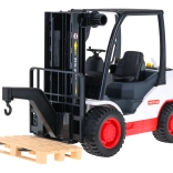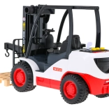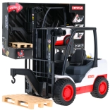 Wózek wyposażono w dziewięć gumowych kół oraz ręczne sterowanie, które umożliwia łatwą obsługę. W zestawie znajduje się także paleta do załadunku i rozładunku. Dzieci mogą bawić się w operatora wózka i przeżywać wyjątkową, interaktywną zabawę.
