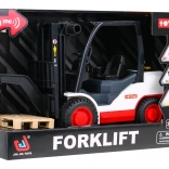 Interaktywny wózek dziecięcy z napędem dla dzieci od 3 lat z ruchomymi widłami, efektami dźwiękowymi i świetlnymi dla realistycznej zabawy.