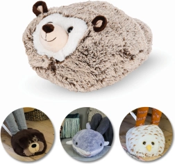 Jednoczęściowy, mięciutki i cieplutki, ogromny domowy pantofel, który służy jako ogrzewacz do stóp, a jednocześnie może być designerskim dodatkiem lub zabawką, bo dzieci kochają urocze rzeczy. Super miękkie wypełnienie i wygodne wnętrze zapewniają naturalne ogrzanie stóp bez ryzyka poparzenia lub przegrzania. Przeznaczony do użytku w pomieszczeniach, idealny do relaksu na sofie lub w łóżku. Noś go podczas oglądania telewizji, grania, pracy na komputerze, czytania książki czy innych czynności relaksacyjnych wykonywanych w pozycji siedzącej lub leżącej. Ta linia produktów oferuje różne motywy zwierząt, dzięki czemu każdy członek rodziny może mieć swojego zwierzęcego przyjaciela u stóp. W ofercie Cozy Noxxiez znajdziesz w wielu przypadkach także ogrzewającą pluszową poduszkę 3 w 1 lub koc z kapturem i kieszeniami z motywem tego samego zwierzątka, dzięki czemu możesz mieć cały zestaw rozgrzewający w tym samym designie. W 2023 roku do oferty dołączyły, jako zupełna nowość, także telewizyjne koce–bluzo–mikriny dla dzieci w wieku 3–6 lat i 7–12 lat, które tematycznie pasują do niektórych kolekcji.