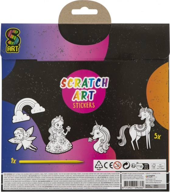 Każda zdrapująca naklejka odkrywa wspaniałe kolory i wzory, które czekają na twoje odkrycie.