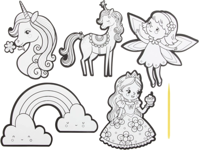 Użyj dołączonego do zestawu rysika do zdrapywania, aby odkryć kolorową magię pod każdym obrazkiem.