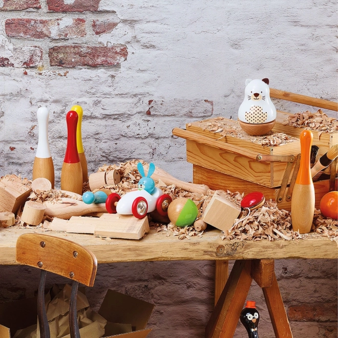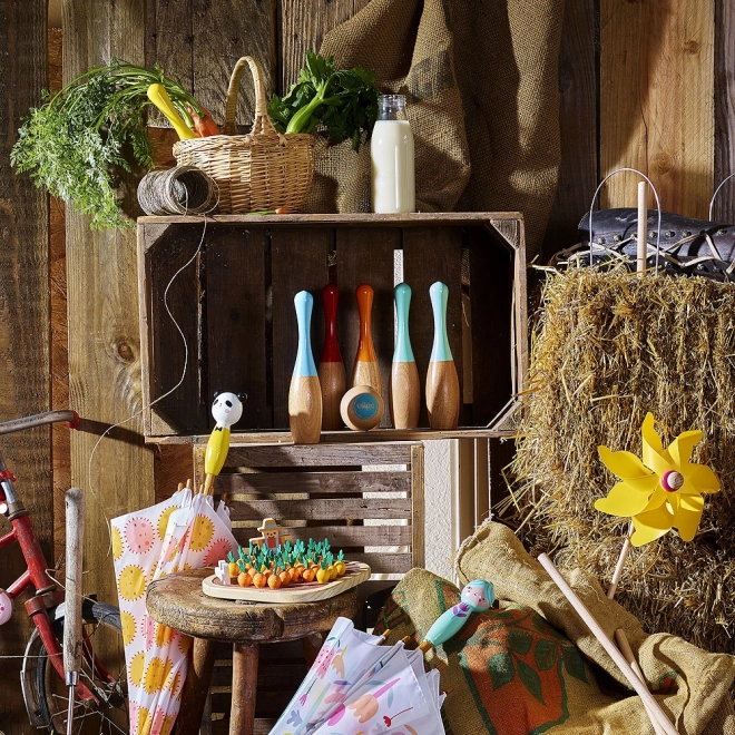 Odkryj klasyczną zabawę w nowoczesnym wydaniu. Drewniane kręgle VILAC z lakierowanego drewna wyróżniają się wysoką jakością wykonania, ponadczasowym designem i łatwą przenośnością dzięki bawełnianemu woreczkowi. Idealne do rodzinnej gry i treningu celności.