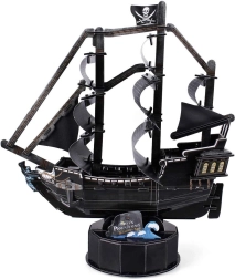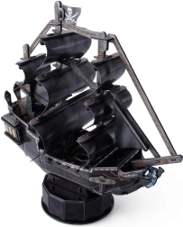 Ten 3D puzzle replikuje ikoniczny statek z czarnymi żaglami i czaszką na fladze.