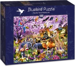 Zrelaksuj się przy układaniu wysokiej jakości puzzli Bluebird z 1000 elementów. Motyw We dwoje na Arkę Noego zachwyci miłośników zwierząt i rodzinnego układania. Precyzyjnie wycinane elementy, delikatne przejścia kolorystyczne oraz przyjemny format dla komfortowego układania.