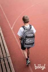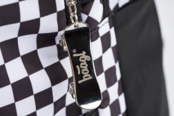 Czarno-biały wzór szachownicy z odblaskowymi elementami dla bezpieczeństwa oraz bonusowy metalowy brelok.