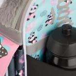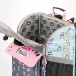 W skład zestawu wchodzi także klasyczny, jednoprzestrzenny piórnik z dwiema klapkami i wysokiej jakości zamkiem oraz praktyczny worek z mocnego, zmywalnego materiału z przednią kieszenią na zamek. Cały zestaw zdobi popularny motyw pandy i uzupełniają go elementy odblaskowe dla lepszej widoczności.