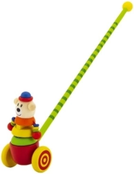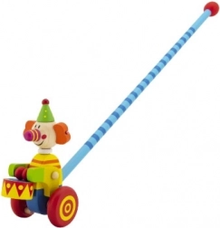 Podczas pchania wesoły klaun porusza się i obraca, wspierając dziecięcą ciekawość i motywując do dalszego pchania zabawki.