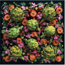 Delektuj się estetycznym doświadczeniem z motywem od znanej smakoszki i fotografki Sarah Phillips, stojącej za projektem Ugly Produce is Beautiful. Kontrast czarnego tła z żywymi tonami zielonych karczochów, rubinowych pomidorów i fioletowych kwiatów tworzy imponujący obraz, który zachwyca podczas układania i po oprawieniu w ramę.