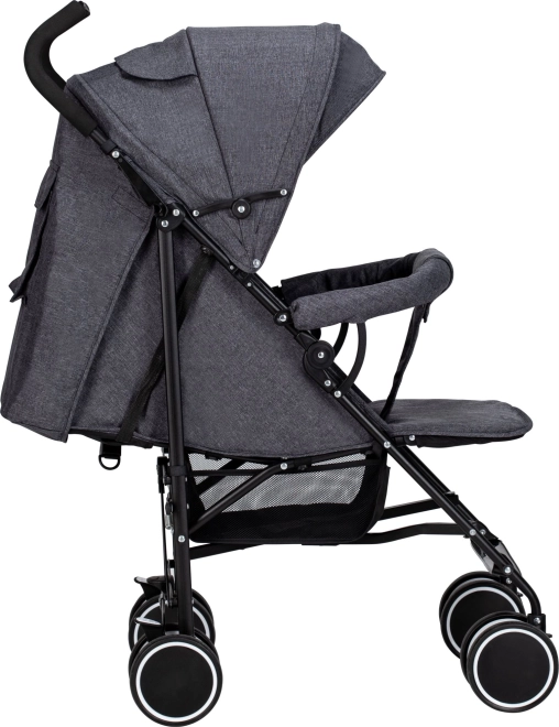 Dla bezpieczeństwa i komfortu dziecka wózek wyposażono w pięciopunktowy pas z wyściółką, regulowane oparcie z siateczką dla lepszej wentylacji oraz regulowany podnóżek. Duża budka z okienkiem chroni przed słońcem i wiatrem, a pałąk dla dziecka oraz pojemny kosz zwiększają wygodę podczas codziennych wyjść.