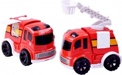 W zestawie dwa czerwone autka z dopracowanymi detalami, jedno z wysuwną drabiną. Idealne do scenariuszy ratunkowych i jazdy po stacji.
