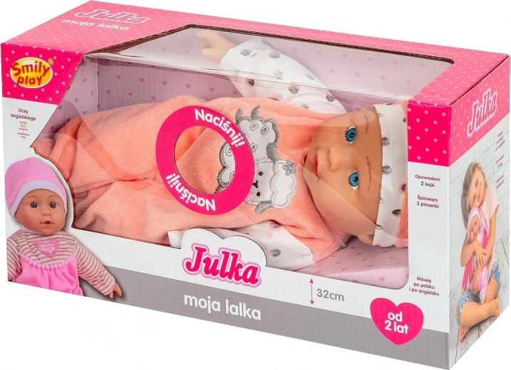Szukasz pierwszej lalki, z którą dziecko nie tylko się pobawi, ale też czegoś się nauczy? Mówiąca lalka niemowlę Julka zachęca do czułej opieki, rozwija umiejętności społeczne i naturalnie wprowadza w świat obcego języka. Miękkie ubranko, przyjemne materiały i urocze detale czynią z Julki ukochaną przyjaciółkę do wózka i do łóżeczka.