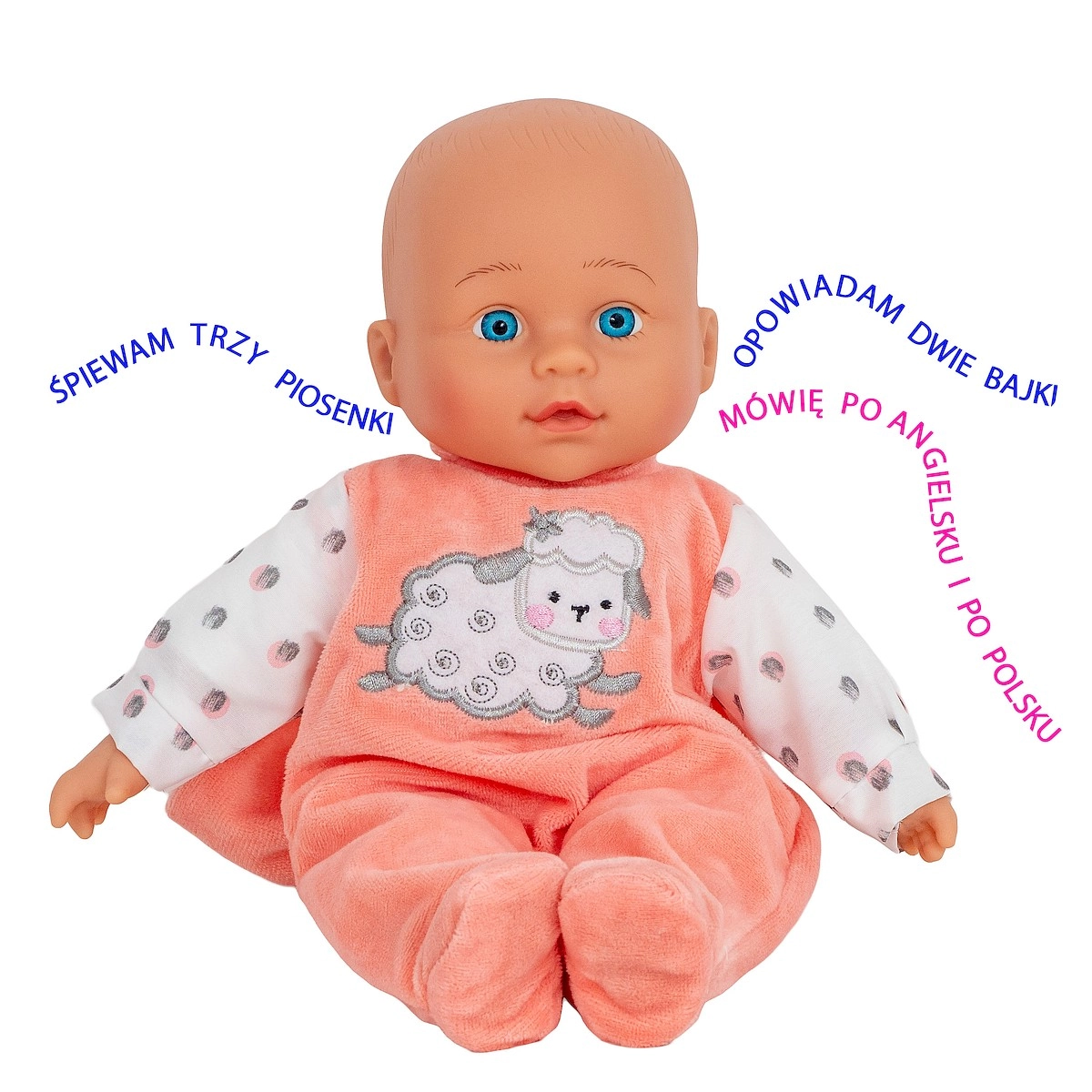 Lalka zaśpiewa 3 piosenki i opowiada 2 klasyczne bajki (Złotowłosa i trzy niedźwiedzie, Czerwony Kapturek), które rozwijają pamięć słuchową i wyobraźnię.