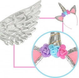 Ta opaska zamieni każde dziecko w magicznego jednorożca dzięki eleganckiemu srebrnemu rogowi i dekoracyjnym kwiatom.