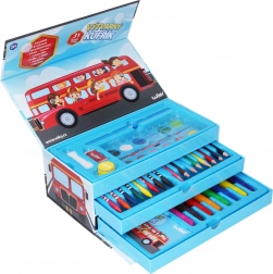 Artystyczna walizeczka dla dzieci z motywem autobusu, 31 szt.