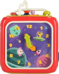 Kolorowa i przyjazna dla użytkownika, ta kostka przyciąga uwagę dzieci ruchomymi wskazówkami zegara i interaktywnymi elementami.