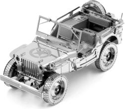 METAL EARTH ICONX oferuje dopracowany model JEEP WILLYS MB z nierdzewnych blaszek, który ucieszy każdego fana historii, techniki wojskowej i precyzyjnych miniatur. Elementy łączone są bez kleju za pomocą zamków i zaginania języczków – wystarczy cierpliwość, sprawne dłonie i podstawowe narzędzia.