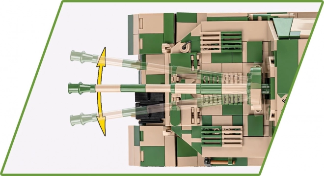 Zestaw oferuje bogate możliwości zabawy i kolekcjonowania: wyjmowany silnik, ruchome gąsienice, działo sterowane w pionie i poziomie, dopracowane wnętrze oraz otwierane włazy. W komplecie znajduje się także figurka dowódcy z lornetką i słuchawkami oraz tabliczka z nazwą pojazdu do ekspozycji.