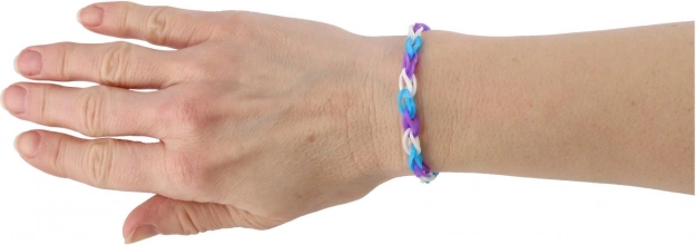 600 szt. silikonowych gumek (mix kolorów), trzyrzędowe krosno, szydełko, zapięcia, instrukcja