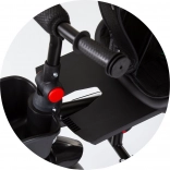 Rączka dla rodzica jest regulowana w 2 pozycjach dla łatwego manewrowania, składany daszek z osłoną przeciwsłoneczną chroni przed pogodą, a praktyczne kosze z przodu i z tyłu mieszczą drobiazgi na drogę. Składane podnóżki i uchwyt na napoje zwiększają komfort dziecka i rodzica.