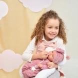 Realistyczna buzia, delikatne rzęsy oraz winylowe rączki i nóżki. Tekstylny brzuszek jest miękki i idealny do przytulania oraz noszenia.