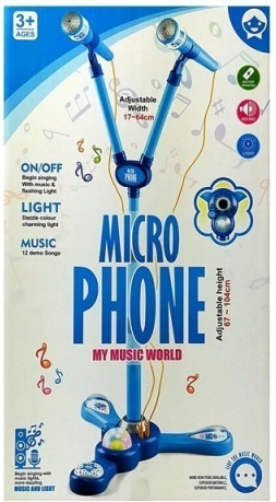 Ten wielofunkcyjny zestaw karaoke w niebieskim kolorze to świetny prezent dla dzieci, które kochają śpiew i występy. Dzięki regulowanemu statywowi i dwóm oddzielnym mikrofonom można śpiewać solo lub w duecie z przyjaciółmi. Efekty świetlne i 12 wgranych melodii zamienią każdy pokój w małą scenę.