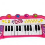 Ten fortepian ma 24 klawisze. Dziewczęce pianino wyróżnia się przyjemną dla oka różowo-fioletową kolorystyką oraz świecącymi gwiazdkami w 4 różnych kolorach. Organki wykonane są z certyfikowanego, wytrzymałego plastiku najwyższej jakości, dlatego posiadają certyfikat CE. Nad czarno-białymi klawiszami znajduje się rząd kolorowych różnych przycisków, które aktywują rewelacyjne efekty i funkcje.