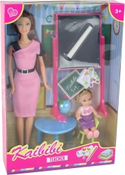 Zanurz się w świecie edukacji z tym wspaniałym zestawem szkolnym, który przynosi kreatywne gry i scenariusze związane ze szkołą. W opakowaniu znajdziesz nauczycielkę z długimi brązowymi włosami i eleganckim różowym ubraniem, która jest gotowa uczyć. Zestaw obejmuje również ucznia z długimi blond włosami, ubrany do biało-fioletowej sukienki. Obie lalki można stylizować i nadawać im różne role.