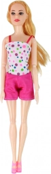 Urocza lalka na różowym skuterze zapewnia godziny kreatywnej zabawy. Ma długie blond włosy, zdejmowany różowy kask oraz ruchome ręce i nogi. Różowy skuter z obracającą się kierownicą i jeżdżącymi kołami wspiera zabawy w udawanie i bezpieczną jazdę dzięki mocowaniu lalki. Odpowiednie dla dzieci od 3 lat, certyfikat CE i zgodność z EN71.