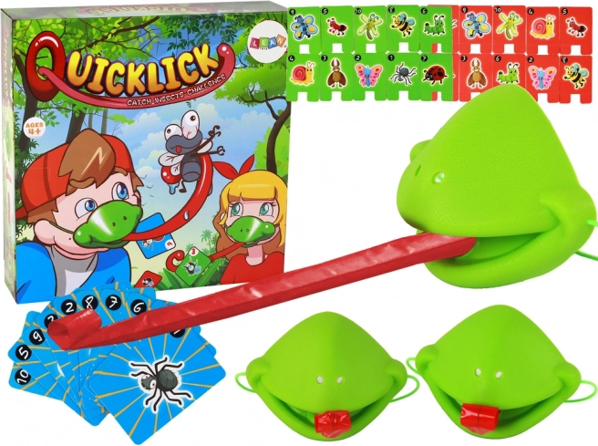 Wejdź w rolę żabek, załóż maski i przygotuj języczki! Rozdający odwraca kartę z obrazkiem owada, a zadaniem graczy jest jak najszybciej trafić właściwy cel wysuwanym językiem. Kto trafi i zgarnie kartę jako pierwszy, zdobywa punkt. Wygrywa ten, kto zbierze najwięcej kart.