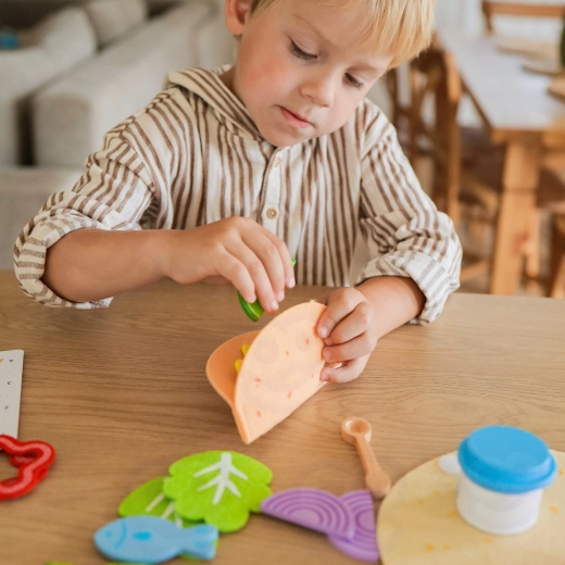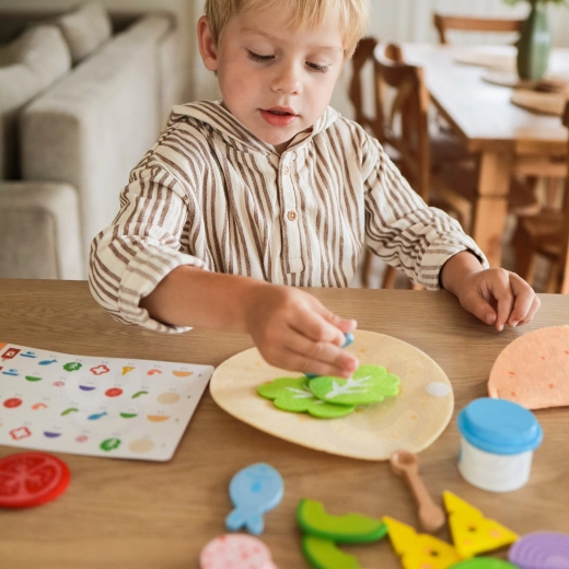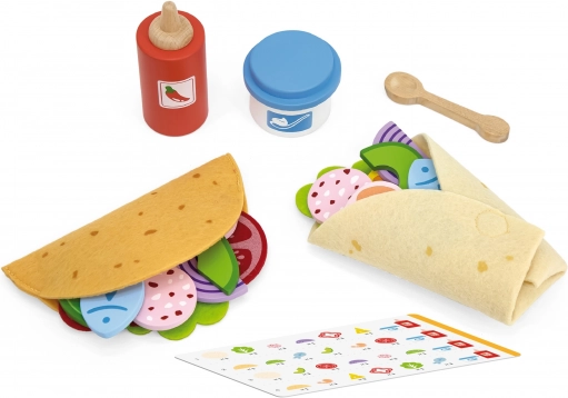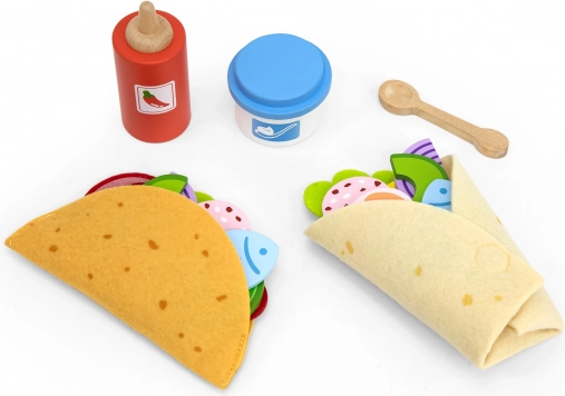Tortille, sos, „jogurt” i ponad dwadzieścia kolorowych drewnianych składników (np. awokado, cebula, ser czy ryba) pozwalają dzieciom tworzyć własne taco i burrito za każdym razem inaczej.