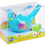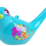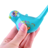 Uroczy wodny ptasi gwizdek z wytrzymałego plastiku zapewnia dzieciom mnóstwo zabawy. Wystarczy wlać do niego odrobinę wody, a podczas dmuchania tworzy czyste i trelujące tony w zależności od ilości wody i siły oddechu. Lekki, bezpieczny i kolorowo zdobiony dla jeszcze większej radości z zabawy.