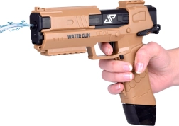 Ten nowoczesny pistolet na wodę wykorzystuje mechanizm elektryczny – naciśnij spust, a silnik natychmiast uruchomi ciągły strumień wody. Wytrzymała plastikowa konstrukcja oraz ergonomiczny uchwyt z antypoślizgową fakturą gwarantują pewny chwyt i łatwą obsługę także dla młodszych dzieci.